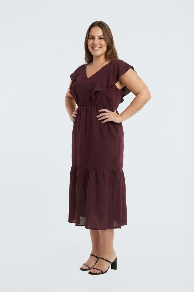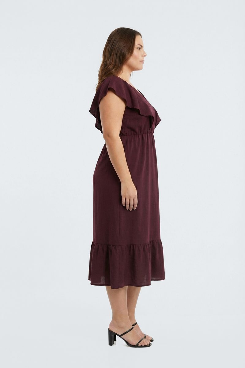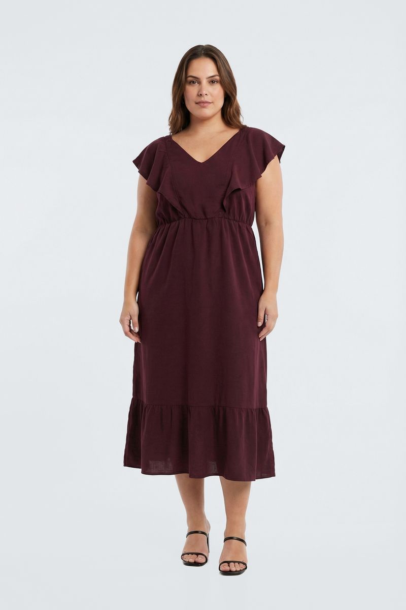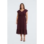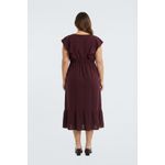 Sinta-se deslumbrante com o Vestido Feminino Vinho Caedu. Com decote V e babados charmosos, este vestido define sua silhueta com elegância e conforto. Perfeito para quem busca moda e estilo em uma única roupa, realçando sua beleza natural.