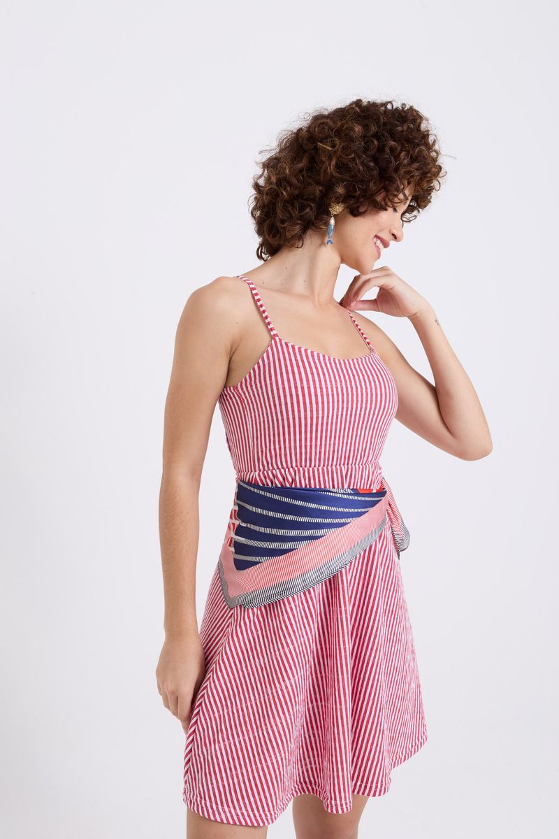 Descubra o Vestido Curto Listrado Caedu, uma peça essencial para a moda feminina. Com design listrado vermelho e branco e uma charmosa faixa estampada na cintura, ele oferece um visual moderno e confortável. Perfeito para quem busca roupas Caedu com estilo único e praticidade.