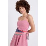 Detalhes: Faixa estampada na cintura, alças finas, decote reto
